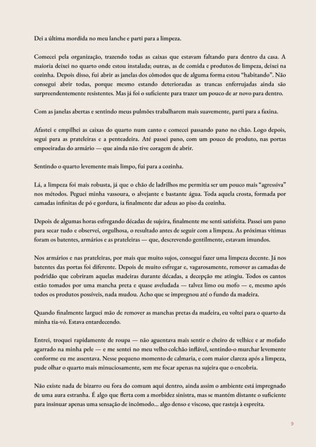 Tentando ignorar os tantos outros ovos que se apresentavam em inúmeros tamanhos pelo caminho ela chegava ao fim das pegadas, atrás do maior vaso de plantas da sala onde repousava uma bela monstera que naquele momento estava coberta por um estranho piche misturado com placas de sangue espesso e seco.